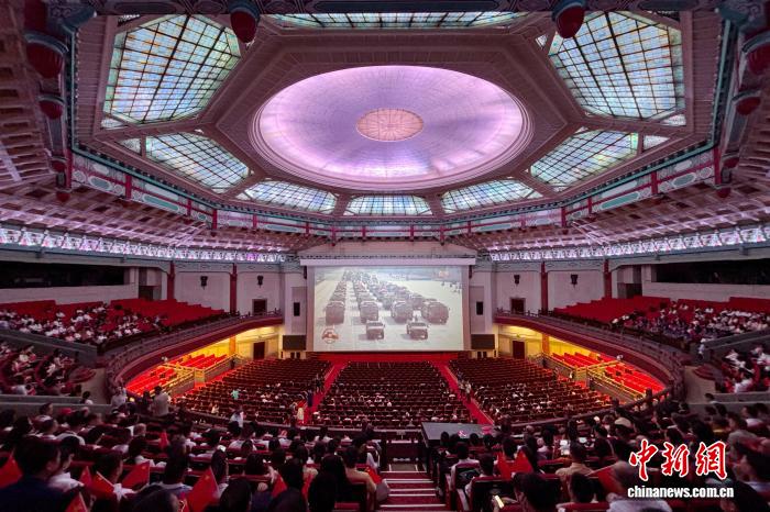 為紀(jì)念中國人民抗日戰(zhàn)爭暨世界反法西斯戰(zhàn)爭勝利80周年,“銘記歷史,傳承薪火”千人觀看閱兵直播活動(dòng)當(dāng)天在廣州舉行。其中,來自美國、英國、新西蘭、馬來西亞等25個(gè)國家的青年僑領(lǐng)、歸僑代表等60人在中山紀(jì)念堂與各行業(yè)代表、學(xué)生代表等1000余人共同觀看直播。