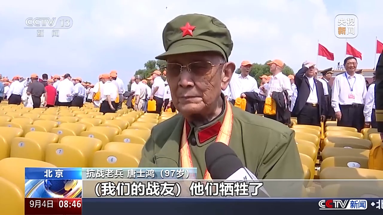 抗戰(zhàn)老兵 唐士鴻:我們的戰(zhàn)友他們犧牲了,沒(méi)有看到今天的勝利?,F(xiàn)在中國(guó)人民解放軍能夠戰(zhàn)勝一切的敵人,叫戰(zhàn)友在地下安息。前一代人故去了,下一代或者多代要把接力棒接下來(lái)繼續(xù)戰(zhàn)斗。不要戰(zhàn)爭(zhēng),不要打仗,要過(guò)和平的生活。