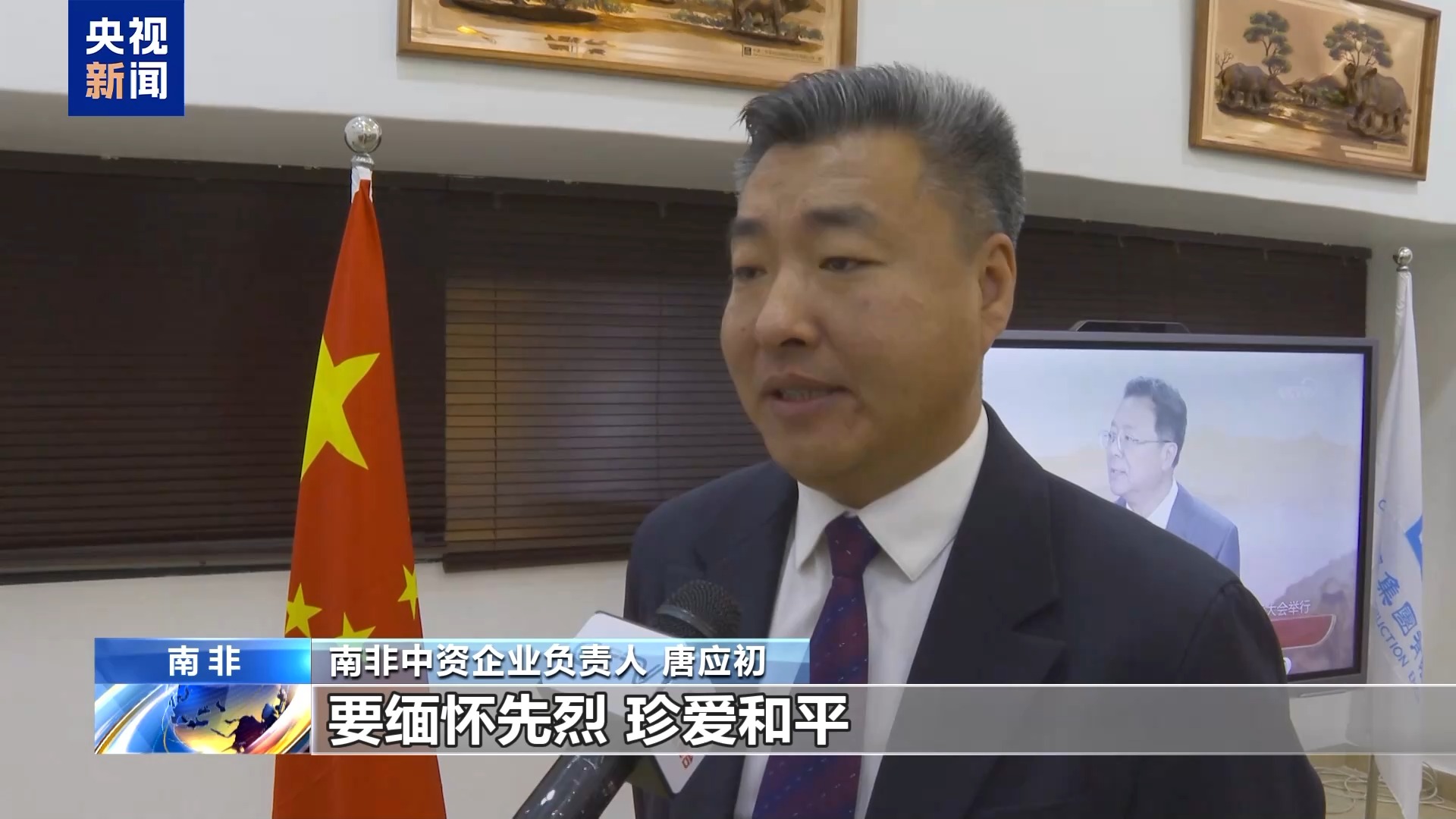 南非中資企業(yè)負責(zé)人 唐應(yīng)初:歷史告訴我們要緬懷先烈、珍愛和平。只有團結(jié)才能勝利,只有合作才能共贏。作為海外建設(shè)者,今天我們胸懷祖國,奮戰(zhàn)一線。用實際行動證明,中國建設(shè)者攻堅克難、敢打必勝。