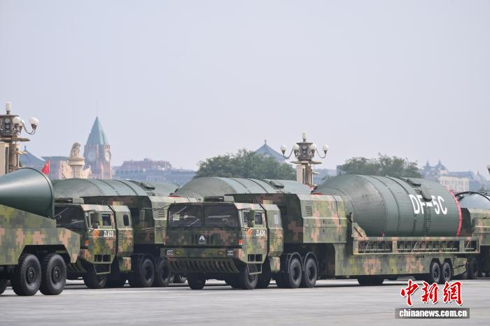 9月3日,紀(jì)念中國(guó)人民抗日戰(zhàn)爭(zhēng)暨世界反法西斯戰(zhàn)爭(zhēng)勝利80周年大會(huì)在北京隆重舉行。圖為核導(dǎo)彈第二方隊(duì)“東風(fēng)-5C”液體洲際戰(zhàn)略核導(dǎo)彈駛過(guò)天安門廣場(chǎng)?!≈行戮W(wǎng)記者 趙文宇 攝
