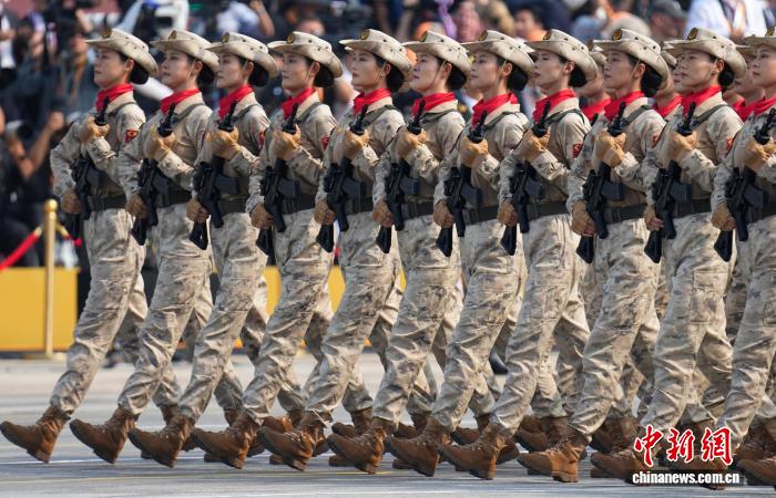 9月3日,紀(jì)念中國(guó)人民抗日戰(zhàn)爭(zhēng)暨世界反法西斯戰(zhàn)爭(zhēng)勝利80周年大會(huì)在北京隆重舉行。圖為民兵方隊(duì)接受檢閱。該方隊(duì)全部由女民兵組成,這是民兵首次亮相以紀(jì)念抗戰(zhàn)勝利為主題的閱兵活動(dòng)?!≈行戮W(wǎng)記者 趙文宇 攝