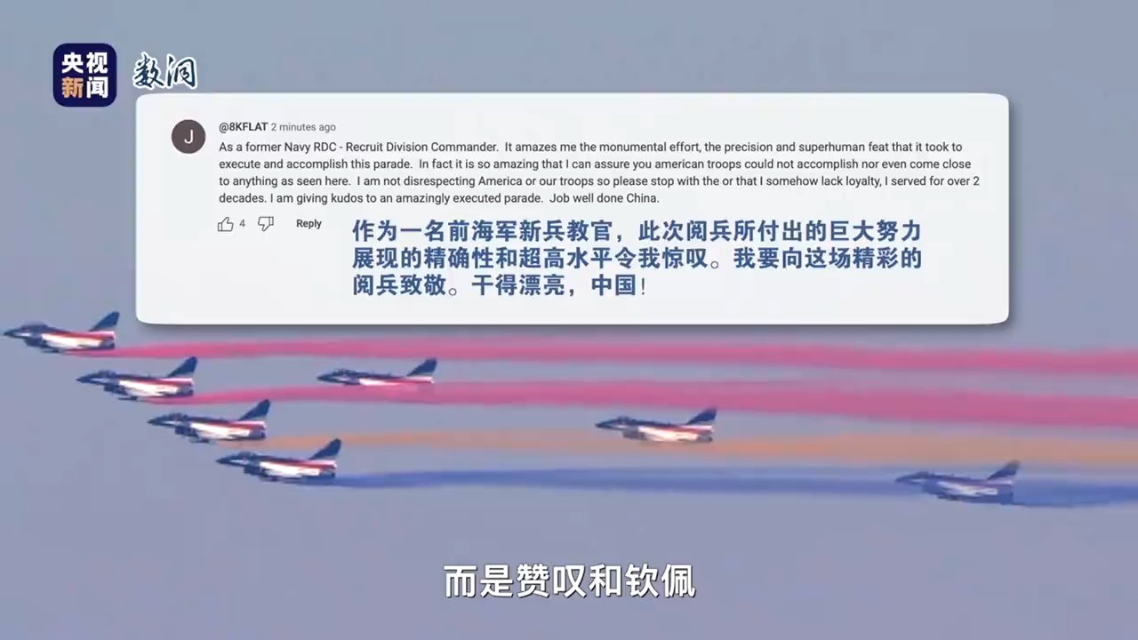 直播開始,評論區(qū)瞬間點(diǎn)燃。網(wǎng)友的留言幾乎成了這幕畫面的另一種特別的實(shí)時(shí)配音:“軍歌一聽,血液就沸騰了”“可惜不能到現(xiàn)場?。 薄邦^皮發(fā)麻、熱淚盈眶”……