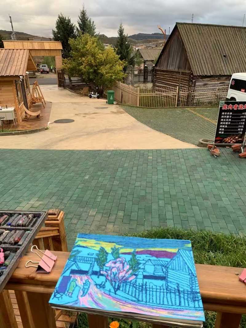 夕陽西下,余暉為鐵熱克提鄉(xiāng)染上一層溫暖金色。正值“丹青墨彩助力鄉(xiāng)村振興”全國名家赴阿勒泰地區(qū)采風寫生活動在此開展,新疆畫院畫家徐江峰立于村頭,畫板上木屋錯落、遠山如黛,“這些木屋依地勢而建,高低起伏,極富節(jié)奏,是最入畫的題材。它們不僅體現(xiàn)人與自然的和諧,更承載著這片土地團結(jié)向上的生活氣息?!?/p>