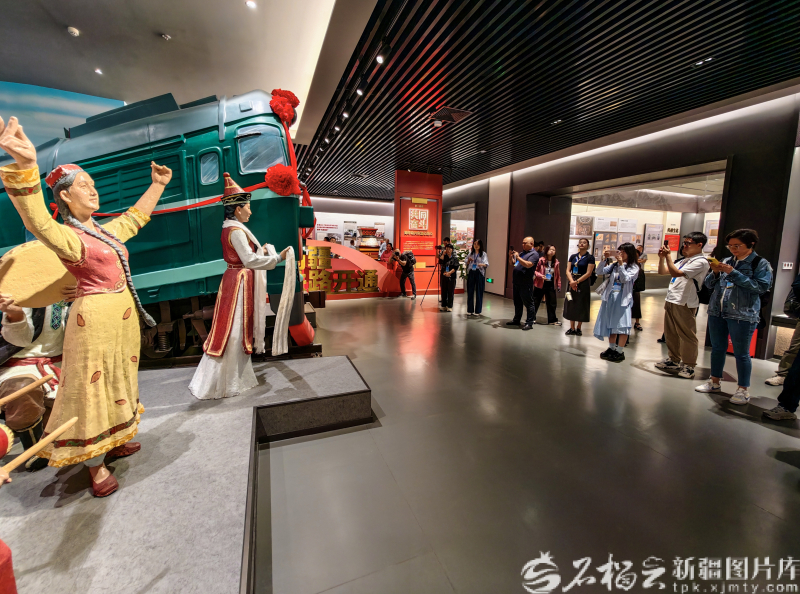 9月8日,在巴州鑄牢中華民族共同體意識主題展館,采訪團(tuán)拍攝南疆火車通車雕塑。