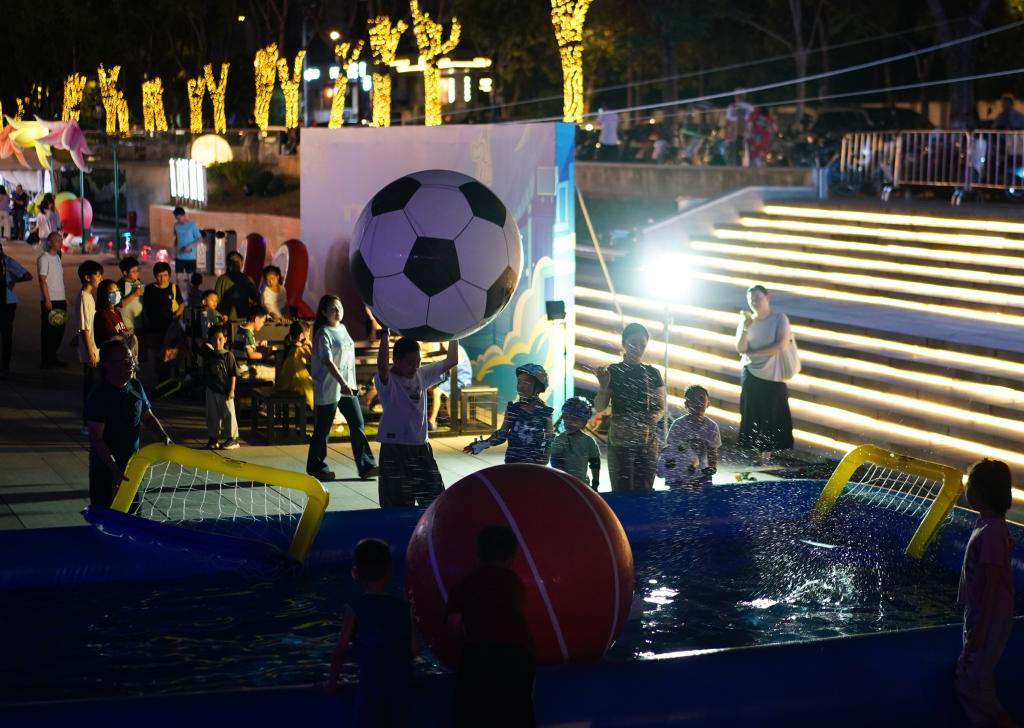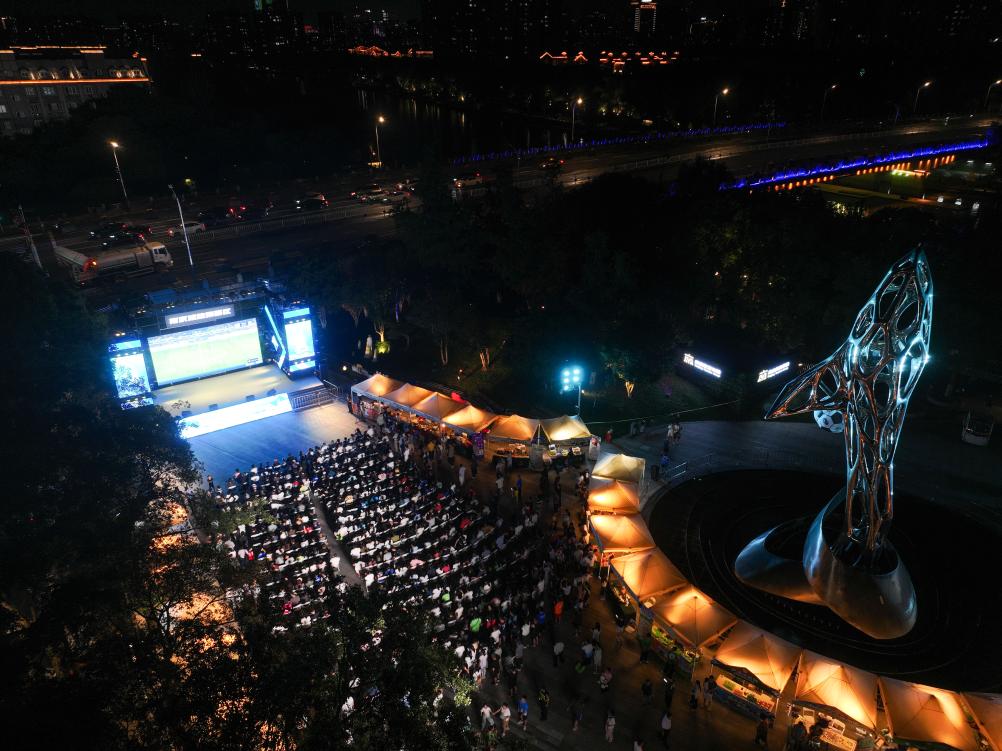8月17日,在江蘇南京舉行的2025江蘇省城市足球聯(lián)賽第九輪比賽中,南京隊(duì)對陣鹽城隊(duì)。南京市在部分商場、街區(qū)等地設(shè)置觀賽“第二現(xiàn)場”,使用大屏幕同步直播賽事,同時(shí)設(shè)有游戲互動區(qū)、煙火市集區(qū),讓球迷們度過歡樂時(shí)光。新華社記者 季春鵬 攝