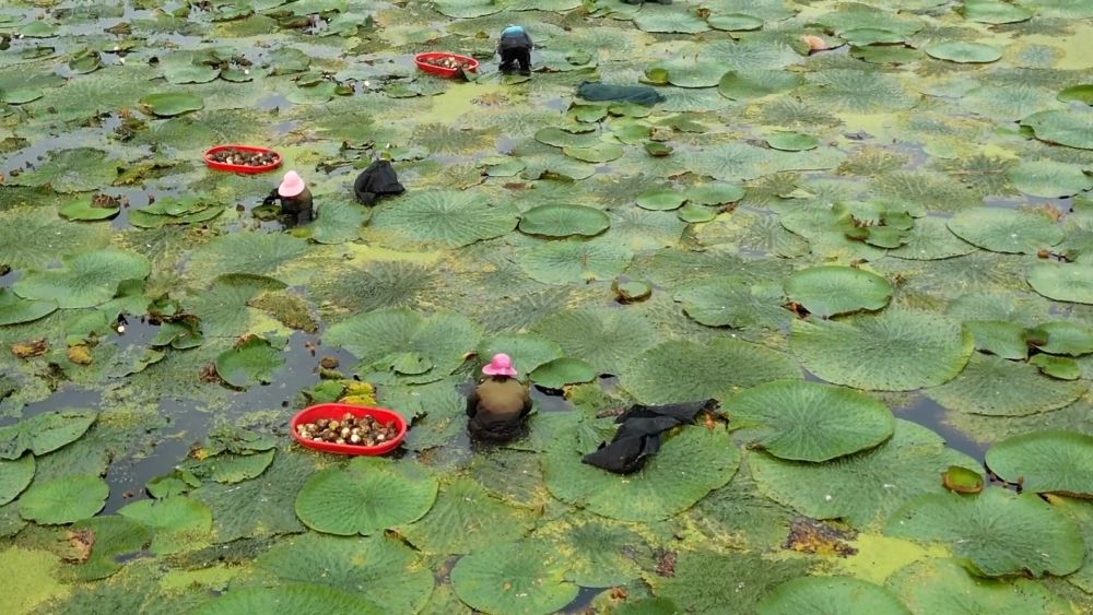 眼下,江蘇省泰州市姜堰區(qū)顧高鎮(zhèn)申俞村芡實(shí)進(jìn)入成熟期,種植戶正抓緊采摘成熟的頭茬芡實(shí)。