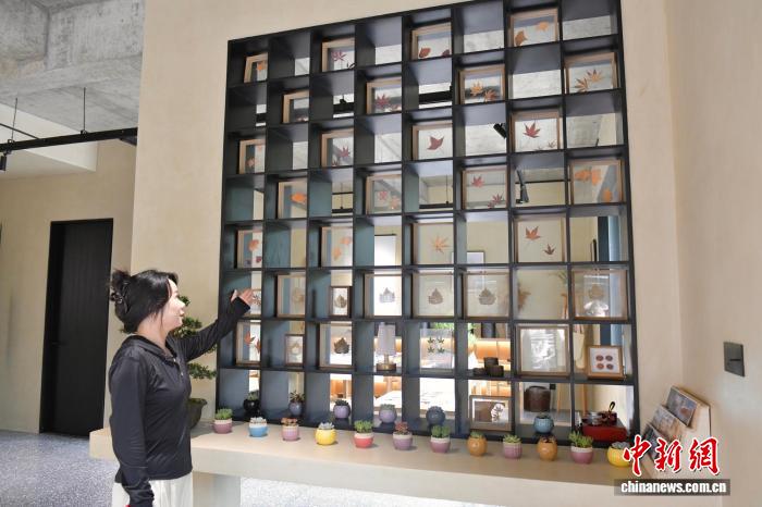 和孫敏一樣想法的還有“90后”民宿店長(zhǎng)徐長(zhǎng)英。楓葉耳飾、樹(shù)葉狀的器皿、各種落葉標(biāo)本做成的裝飾墻……庭院里,她打理著一間“秋日集合地”。