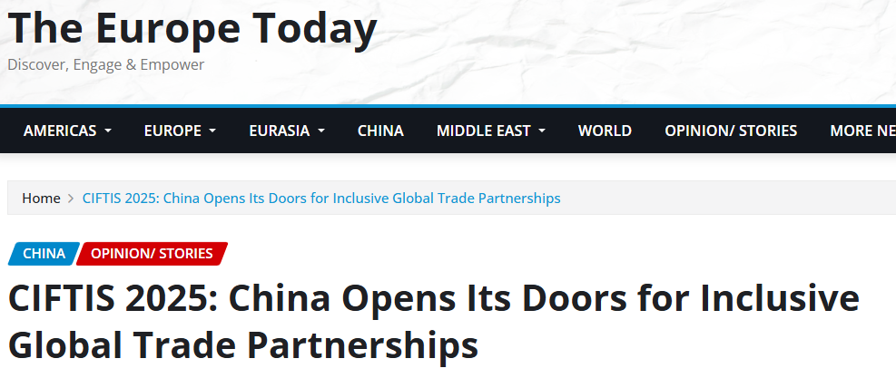 今日歐洲網(wǎng)站(The Europe Today)13日的報(bào)道指出,服貿(mào)會(huì)展示了中國對包容、開放和前瞻性的服務(wù)貿(mào)易的承諾。中國持續(xù)擴(kuò)大市場準(zhǔn)入,為全球企業(yè)創(chuàng)造廣闊機(jī)遇。