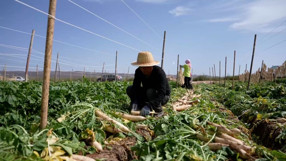 在寧夏吳忠市紅寺堡區(qū)大河鄉(xiāng)平嶺子村,1500畝長美蘿卜迎來豐收季。