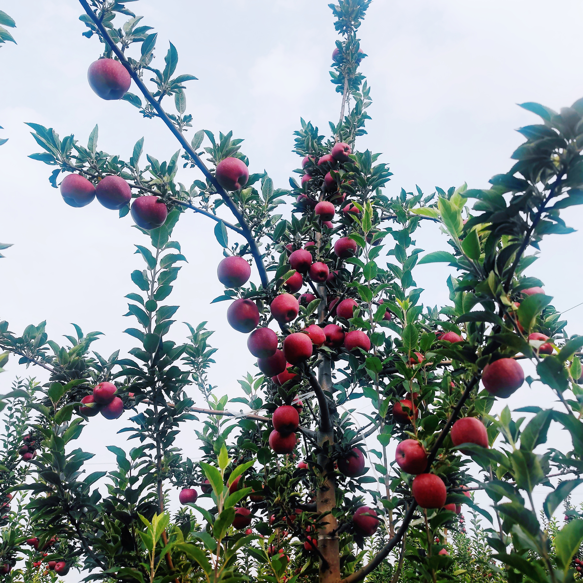 金秋時(shí)節(jié)的平原村蘋果產(chǎn)業(yè)園,550畝果樹長(zhǎng)勢(shì)喜人。放眼望去,漫山遍野的蘋果樹上掛滿了紅彤彤的果實(shí),像一個(gè)個(gè)紅燈籠,把枝頭壓得沉甸甸的。2017年至2018年栽種的323畝瓦里短枝蘋果與200多畝富士蘋果,今年全面進(jìn)入盛果期。得益于今年自然災(zāi)害少、管理精細(xì)化,加之平原村光照充足、土壤肥沃的自然優(yōu)勢(shì),這里的蘋果外形圓潤(rùn)均勻、果面光潔細(xì)膩,咬下一口滿是香脆甜爽,早已成為消費(fèi)者青睞的“心頭好”。