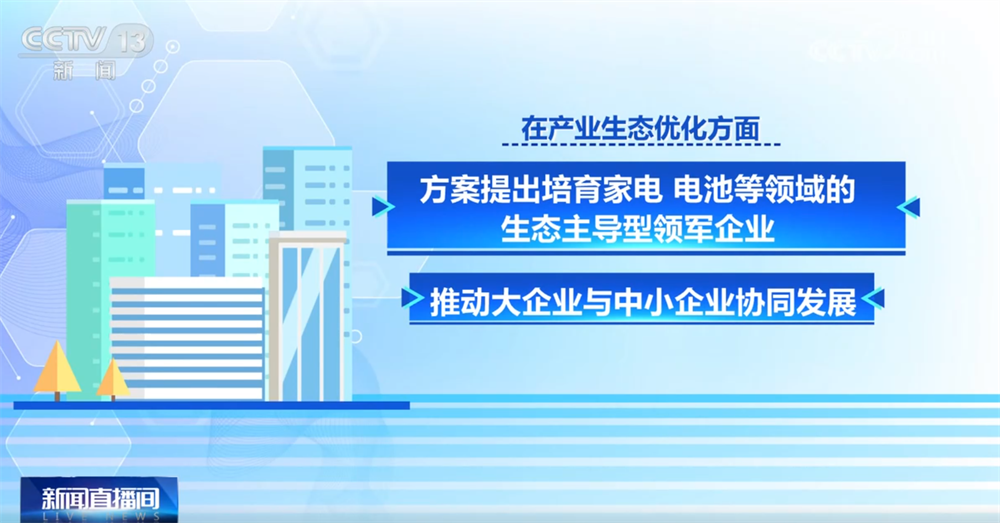 在產(chǎn)業(yè)生態(tài)優(yōu)化方面,方案提出培育家電、電池等領域的生態(tài)主導型領軍企業(yè),推動大企業(yè)與中小企業(yè)協(xié)同發(fā)展;分批打造輕工業(yè)特色產(chǎn)區(qū),引導企業(yè)向中西部轉(zhuǎn)移,淘汰落后產(chǎn)能;通過產(chǎn)融合作、知識產(chǎn)權質(zhì)押貸款等方式,培育世界一流企業(yè)和專精特新“小巨人”企業(yè)。