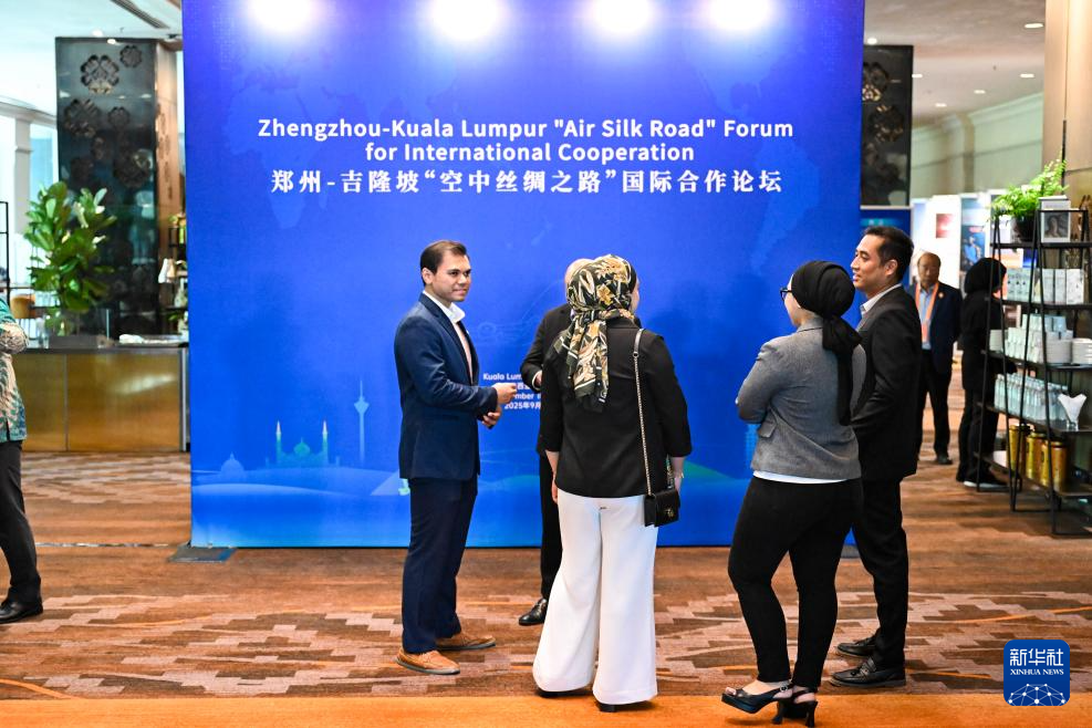 9月18日,馬來西亞吉隆坡國(guó)際機(jī)場(chǎng)舉行的鄭州-吉隆坡“空中絲綢之路”國(guó)際合作論壇開始前,嘉賓們?cè)跁?huì)場(chǎng)外交流。新華社記者 程一恒 攝