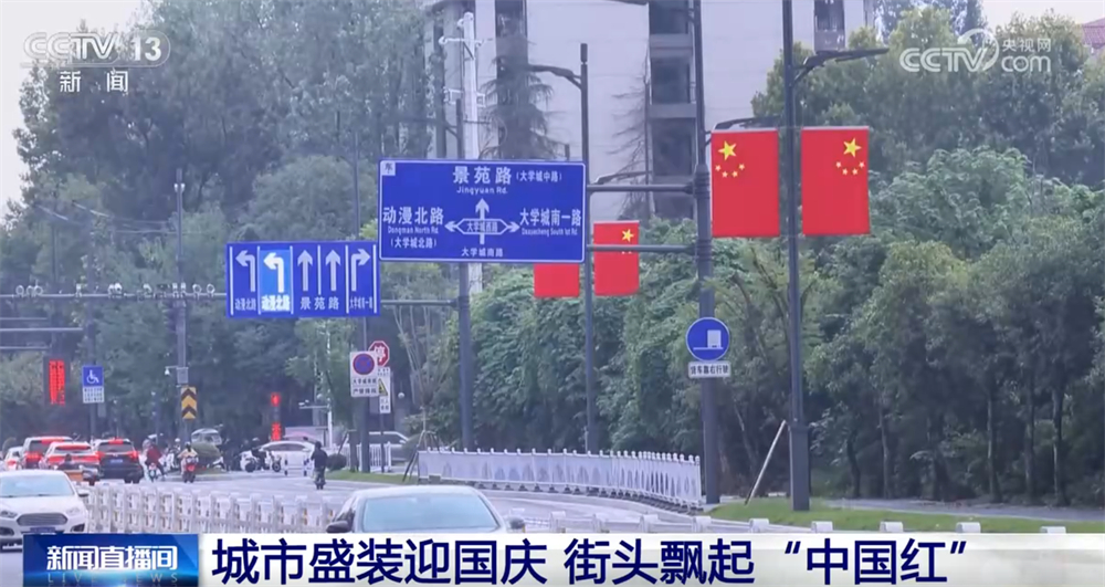 迎風(fēng)飄揚(yáng)的五星紅旗與蔥郁的街道綠樹(shù)交織,構(gòu)成了一道亮麗的風(fēng)景線。一抹抹躍動(dòng)的“中國(guó)紅”扮靚了城市街景,也點(diǎn)燃了人們內(nèi)心深處的愛(ài)國(guó)熱情。