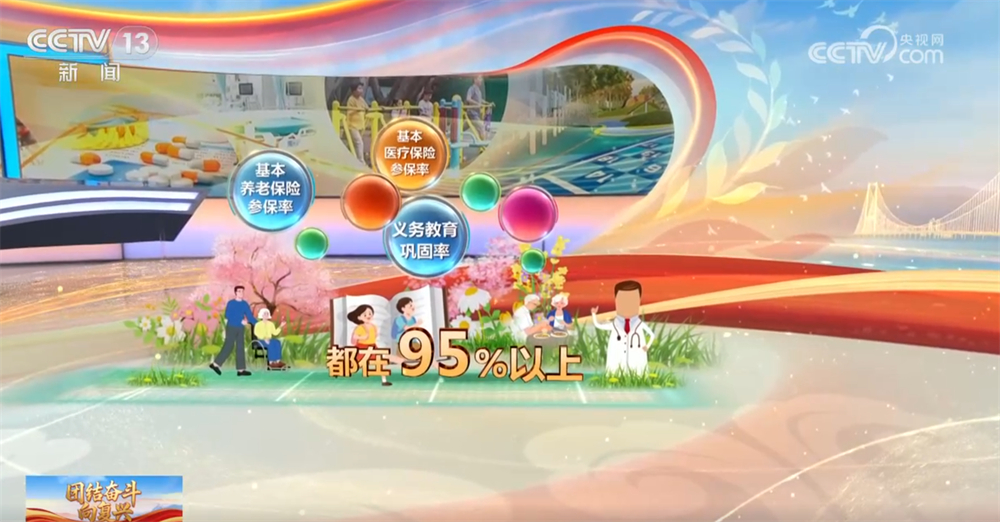 這五年,經(jīng)濟發(fā)展、科技進步的成果實打?qū)嵉剞D(zhuǎn)化為群眾的獲得感和幸福感。我國已建成全球規(guī)模最大的教育體系、社會保障體系、醫(yī)療衛(wèi)生體系,義務(wù)教育鞏固率和基本養(yǎng)老保險、基本醫(yī)療保險參保率都在95%以上。