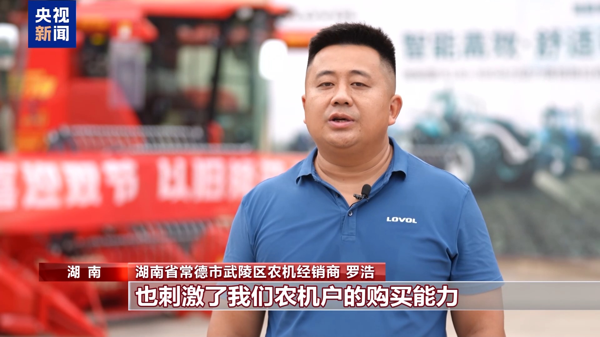 湖南省常德市武陵區(qū)農(nóng)機(jī)經(jīng)銷商 羅浩:以舊換新政策有效地促進(jìn)了我們農(nóng)機(jī)的流通,也刺激了農(nóng)機(jī)戶的購買能力。相比于往年,銷售提升了30%。