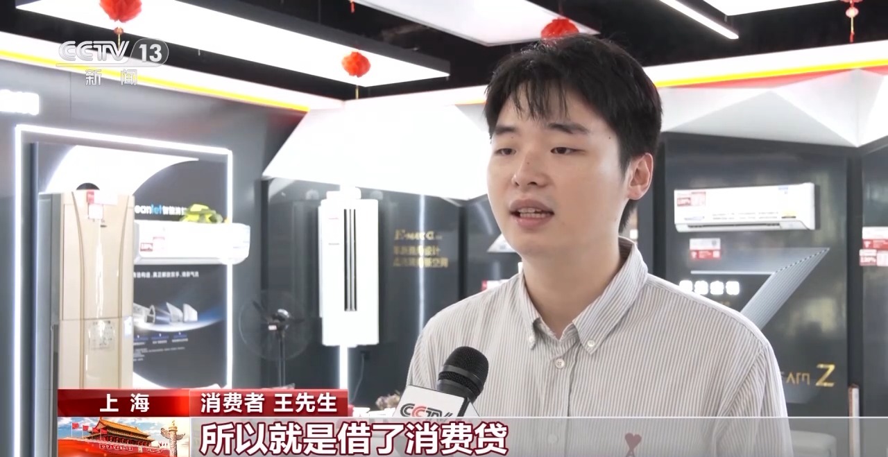 消費(fèi)者 王先生:我想一次性把家電買齊,所以借了消費(fèi)貸。有國(guó)家的補(bǔ)貼,緩解了我的資金壓力,其次就是它操作其實(shí)比較方便,比較快速地就能把我想買的都買齊。