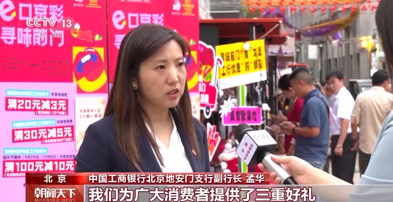 中國(guó)工商銀行北京地安門支行副行長(zhǎng) 孟華:我們?yōu)閺V大消費(fèi)者提供了三重好禮,除了傳統(tǒng)的消費(fèi)滿減活動(dòng)以外,我們還疊加了數(shù)字人民幣的優(yōu)惠支付,同時(shí)還設(shè)計(jì)了數(shù)字人民幣的打卡活動(dòng)。