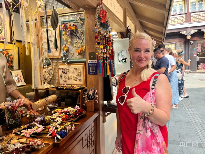 除了時尚消費的多元選擇,上海的特色消費更從“傳統(tǒng)好物”延伸至“科技潮品”,在滿足不同需求的同時,也向境外游客傳遞著中國文化的溫度與現(xiàn)代生活的便利。“我買了很多中國茶葉,買了玉手串。我還買了各種絲綢制品,有漂亮的裙子、絲巾,還有一條可以和媽媽一起使用的絲綢毯子。”俄羅斯游客艾琳娜的行李箱里,裝滿了頗具中國風的優(yōu)質商品,這些都是她眼中“最有中國味道的伴手禮”。