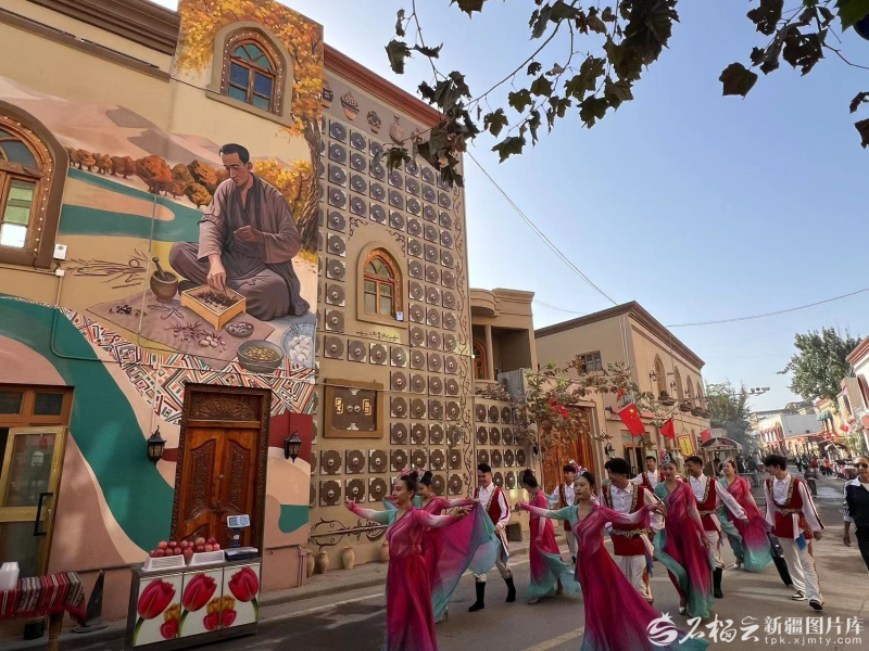 在墨玉縣,老城景區(qū)的“墻上博物館”成為游客感受文化、寄托情思的好去處。游客陳南方與愛人特意來到老街,在“在這里,向祖國致敬”的打卡點(diǎn)前合影留念。“早聽說墨玉是絲路南道的重要節(jié)點(diǎn),這面墻把古商隊(duì)穿越沙漠的場(chǎng)景畫活了,再想想現(xiàn)在的發(fā)展,真有種‘古今對(duì)話’的感覺!”來自烏魯木齊市的游客張斌站在《絲路駝?dòng) 穳η?,一邊拍照一邊感慨?/p>