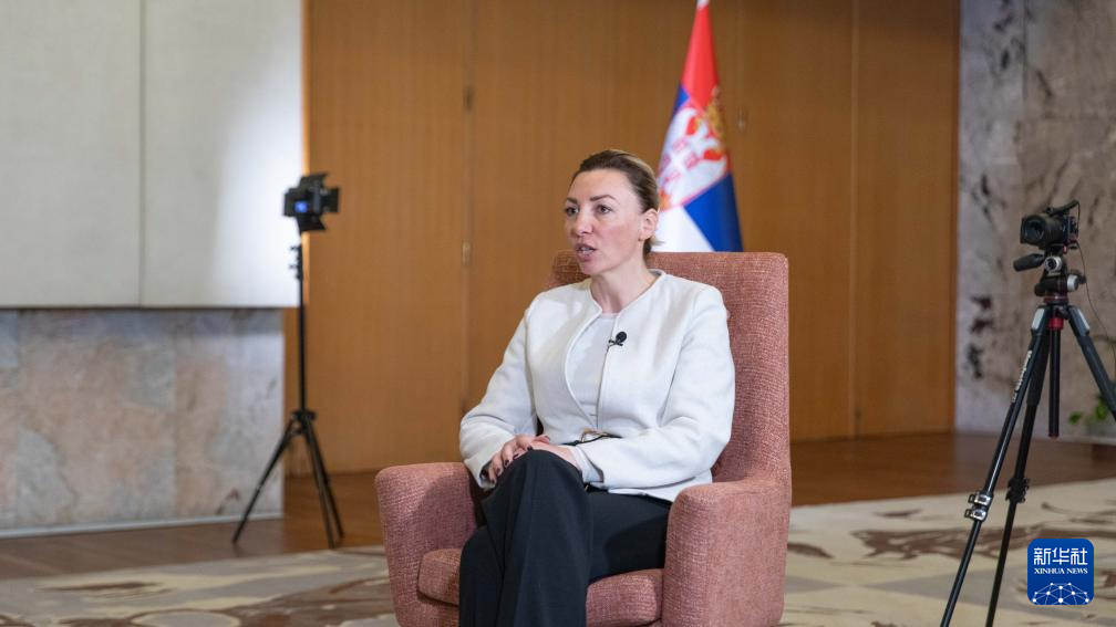 10月2日,塞爾維亞負責(zé)性別平等、防止針對婦女的暴力以及婦女經(jīng)濟和政治賦權(quán)事務(wù)的不管部長塔季揚娜·馬楚拉在塞爾維亞首都貝爾格萊德接受新華社記者專訪。新華社發(fā)(王韡攝)