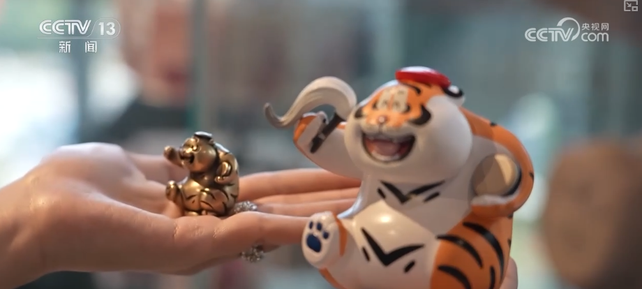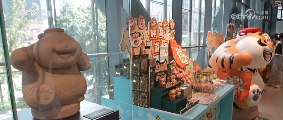 成都博物館文化創(chuàng)意產(chǎn)業(yè)部工作人員伍娜介紹,在整個(gè)文創(chuàng)行業(yè)發(fā)展起來(lái)后,文博行業(yè)也進(jìn)行了一些大膽的嘗試,包括和一些藝術(shù)家、非遺的傳承人,以及現(xiàn)在比較受年輕人歡迎的IP來(lái)進(jìn)行一些跨界的合作。他們想了一個(gè)創(chuàng)意點(diǎn),就是在“胖虎”的手上拿了很多具有成都代表性的元素,比如說(shuō)茶館文化就拿了茶壺。