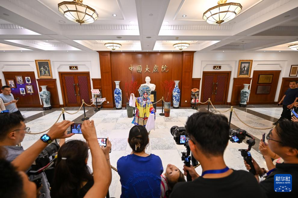 演員在位于天津的中國大戲院為觀眾帶來戲曲快閃表演(10月1日攝)。新華社記者 孫凡越 攝