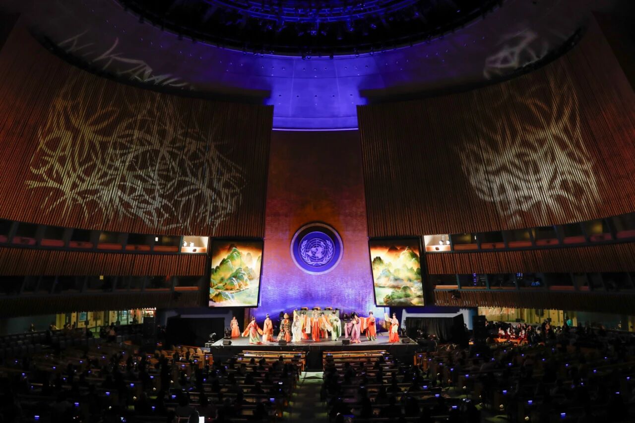 當(dāng)?shù)貢r(shí)間2025年6月9日,中國(guó)在紐約聯(lián)合國(guó)總部舉辦“文明對(duì)話國(guó)際日”主題活動(dòng),包括主題對(duì)話會(huì)、文明交流互鑒長(zhǎng)卷展覽以及“跨越山海的文明對(duì)話”文藝演出等活動(dòng)。 中新社記者 廖攀 攝