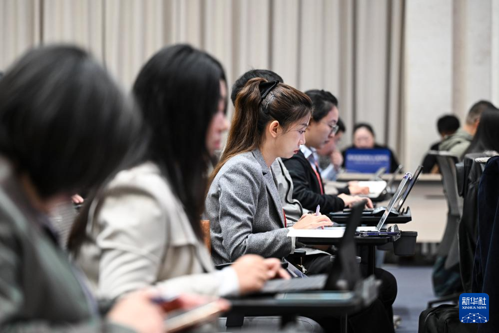10月14日,國(guó)務(wù)院新聞辦公室在北京舉行“高質(zhì)量完成‘十四五’規(guī)劃”系列主題新聞發(fā)布會(huì),國(guó)家發(fā)展改革委黨組成員、國(guó)家糧食和物資儲(chǔ)備局局長(zhǎng)劉煥鑫,國(guó)家糧食和物資儲(chǔ)備局副局長(zhǎng)錢毅、副局長(zhǎng)秦玉云介紹“十四五”時(shí)期糧食流通改革發(fā)展成效,并答記者問(wèn)。這是記者在現(xiàn)場(chǎng)工作。新華社記者 陳曄華 攝