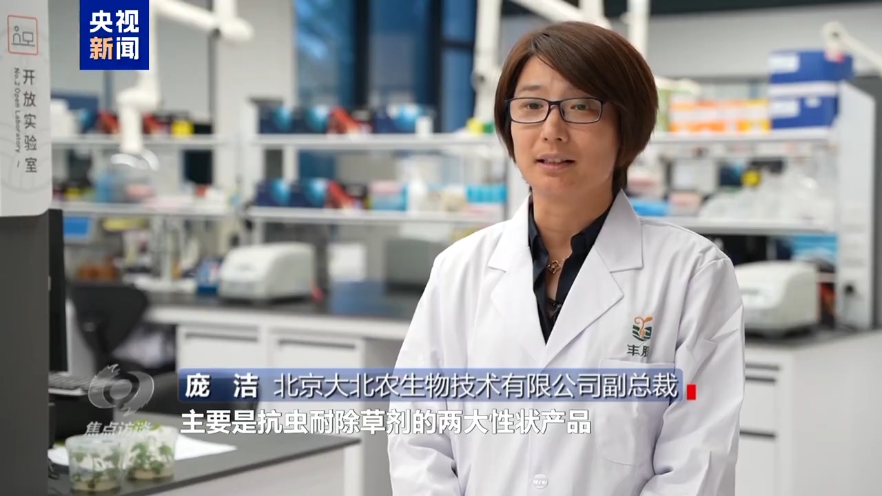北京大北農(nóng)生物技術有限公司副總裁 龐潔:主要是抗除草劑和抗蟲兩大性狀產(chǎn)品,生物育種的產(chǎn)品專利成果,打破了原來只有歐美國家在這個領域擁有產(chǎn)品專利權的局面。