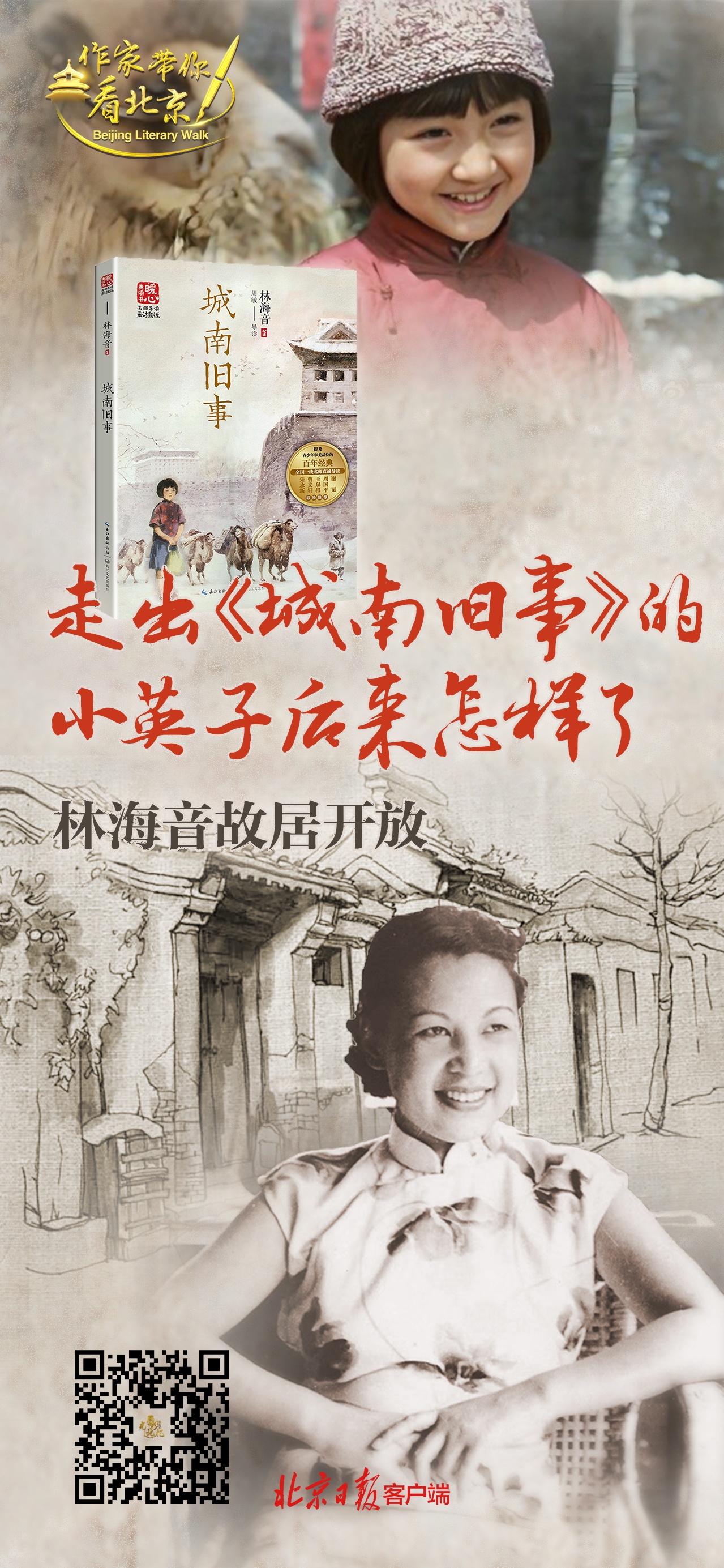 上個(gè)世紀(jì)50年代,林海音以自己在北京城南的童年生活為背景,創(chuàng)作出了帶有強(qiáng)烈自傳色彩的小說《城南舊事》,這本書具有獨(dú)特的魅力和永恒的價(jià)值,“英子的鄉(xiāng)戀”以親切的京味兒語言,寫出了老北京的色、香、味。那刻骨銘心的鄉(xiāng)思和沉甸甸的懷念,滲透在每一滴筆墨中。1983年,基于小說改編的同名電影上映,打動(dòng)了更多人的心弦。