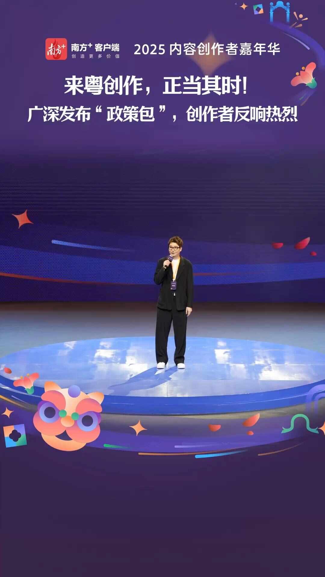 活動(dòng)現(xiàn)場(chǎng)設(shè)置了豐富多樣的展區(qū)、創(chuàng)造營(yíng)和演出秀。其中,“嶺南風(fēng)華創(chuàng)造營(yíng)”邀請(qǐng)“影視颶風(fēng)”“醒目視頻”等數(shù)名優(yōu)質(zhì)創(chuàng)作者,現(xiàn)場(chǎng)分享創(chuàng)作心得?!盀硡^(qū)好物創(chuàng)造營(yíng)”重點(diǎn)聚焦電商平臺(tái)、帶貨者和商家,探討“文化+消費(fèi)”融合等議題?!叭窦文耆A展區(qū)”圍繞政策展示、第十五屆全運(yùn)會(huì)、創(chuàng)作者加油包、廣東好禮和粵趣風(fēng)華等主題,為創(chuàng)作者與政府部門、MCN機(jī)構(gòu)、平臺(tái)等搭建了深度交流空間。