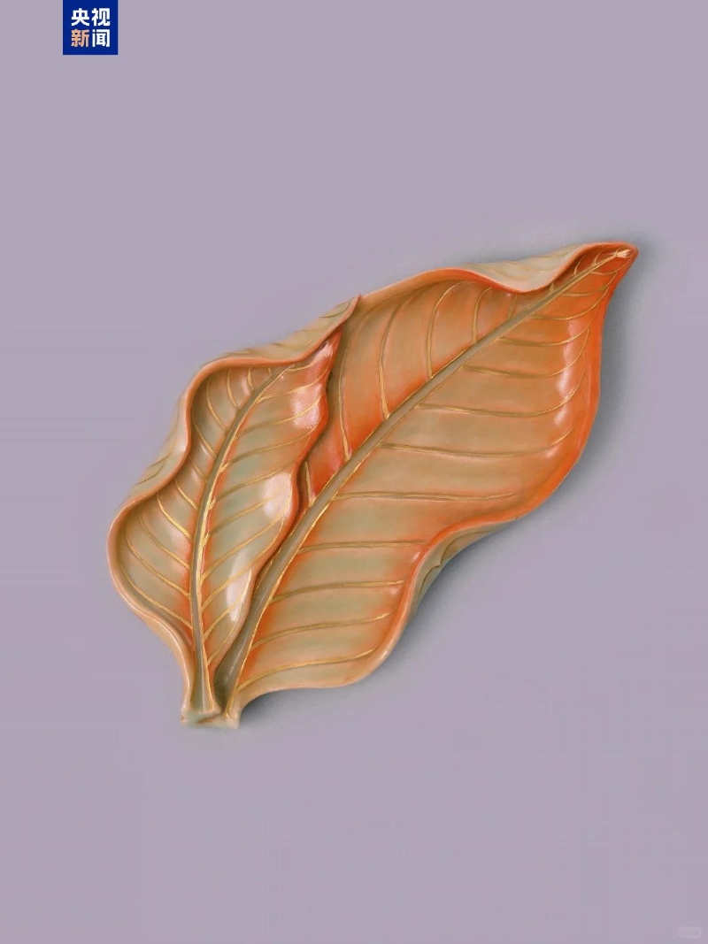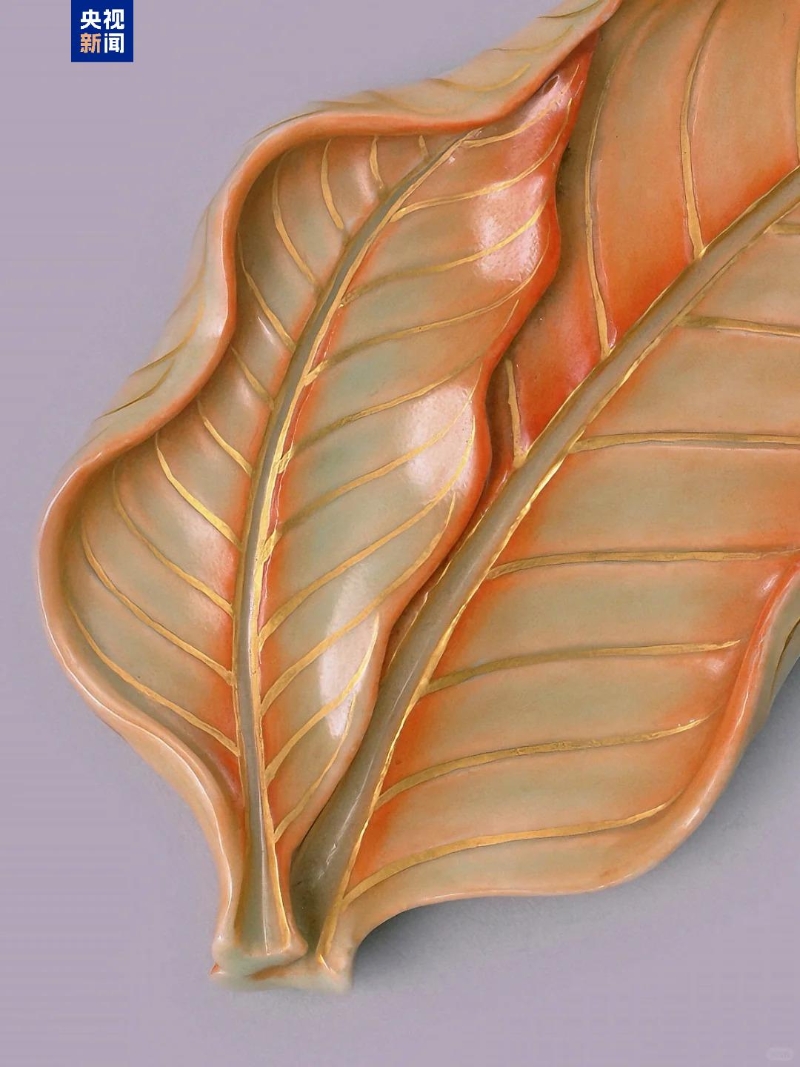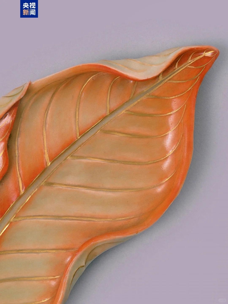 器面的葉脈描畫清晰并以描金裝飾
