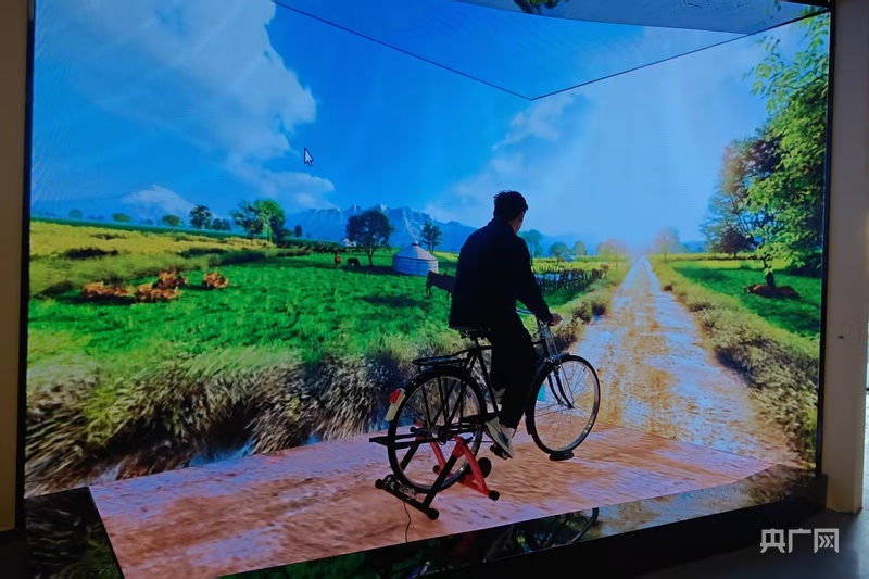 游客在“軍墾之星”數(shù)創(chuàng)基地沉浸式體驗(yàn)兵團(tuán)變遷 (央廣網(wǎng)記者郭璁悅 攝)