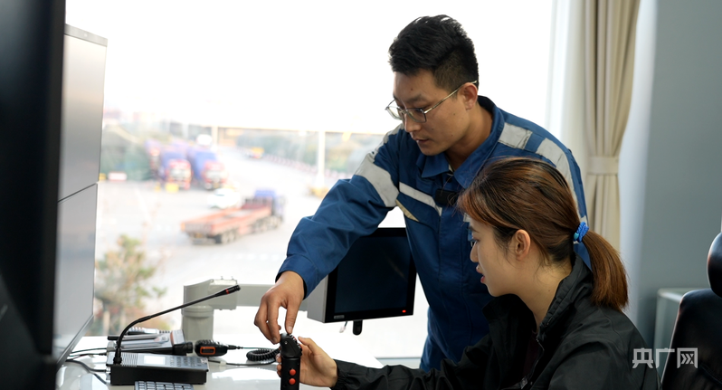 鏡頭從岸線來到西聯(lián)公司件雜貨數(shù)智中心,這里是整個(gè)碼頭的大腦。落地窗外,“中遠(yuǎn)海運(yùn)長(zhǎng)青”輪穩(wěn)穩(wěn)靠泊。數(shù)智中心內(nèi),工作人員對(duì)著電腦屏幕進(jìn)行操控,上面顯示著碼頭各處的實(shí)時(shí)畫面,有的電腦前還有方向盤,電腦桌下還有剎車、油門?!斑@里是操控IGV的,通俗來說就是自動(dòng)駕駛的運(yùn)輸車,在這個(gè)操作臺(tái)上,就可以實(shí)現(xiàn)遠(yuǎn)程監(jiān)控,有點(diǎn)像打游戲?!鼻鄭u港西聯(lián)公司操作部副經(jīng)理孫長(zhǎng)杰介紹。