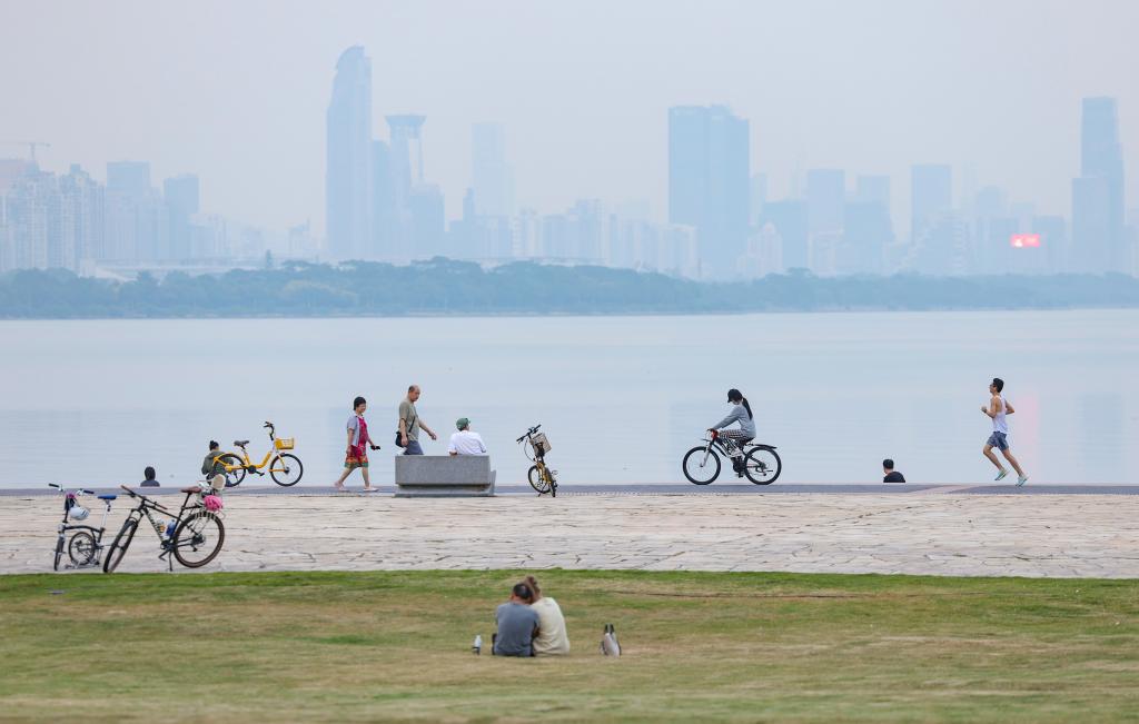 10月30日,市民在深圳灣公園健身。