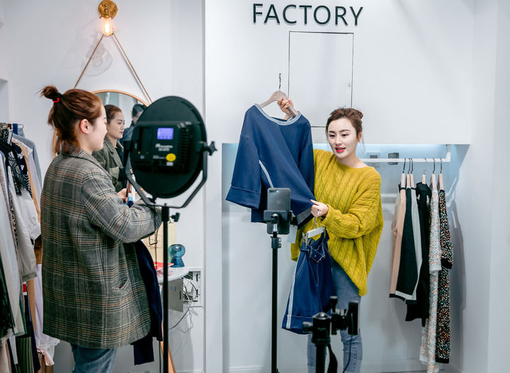 在常熟服裝城,商家在進行網(wǎng)絡直播銷售(資料照片)。新華社發(fā)