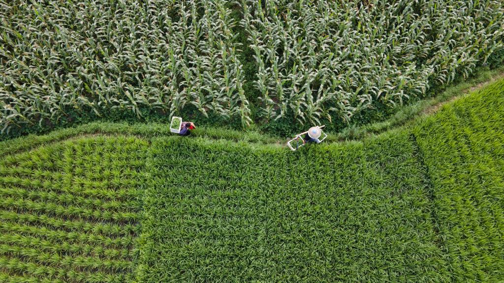 2022年7月7日,在重慶市秀山土家族苗族自治縣溶溪鎮(zhèn)柳水村,村民在搬運(yùn)辣椒(無人機(jī)照片)。新華社發(fā)(胡程攝)