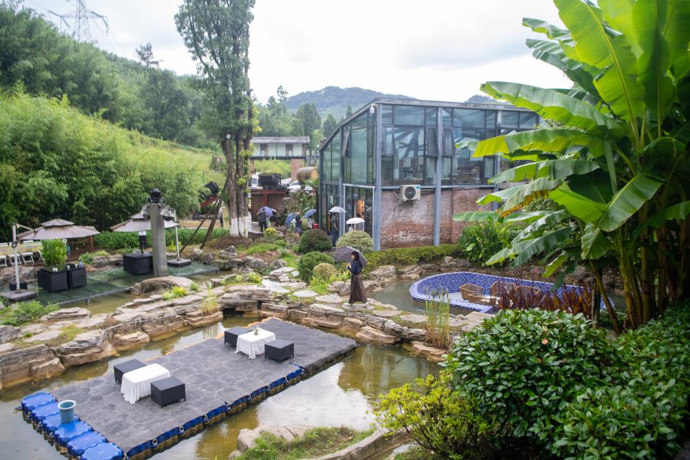 2025年8月15日拍攝的用礦山遺址改造的民宿。近年來,重慶市梁平區(qū)竹山鎮(zhèn)獵神村立足自然資源優(yōu)勢(shì),積極推動(dòng)林業(yè)相關(guān)產(chǎn)業(yè)融合發(fā)展,將原有礦山塌陷區(qū)域進(jìn)行功能重構(gòu)和空間再塑,打造有山有水的小微濕地群落。新華社記者 唐奕 攝