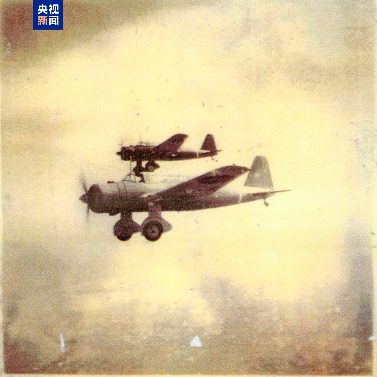 △七三一部隊(duì)成員櫻永孝雄駕駛97式輕轟炸機(jī)在南京上空飛行(圖片由侵華日軍第七三一部隊(duì)罪證陳列館提供)