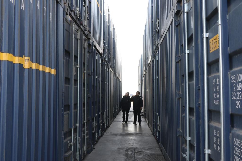 烏拉特海關(guān)關(guān)員巡查監(jiān)管作業(yè)場(chǎng)所進(jìn)口煤炭倉(cāng)儲(chǔ)情況。新華社發(fā)