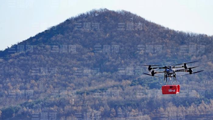 2025年12月24日,大連金普新區(qū),無(wú)人機(jī)配送模式“飛”越擁堵。