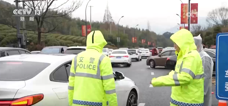 在杭州市余杭區(qū),大徑山部分高海拔地區(qū)也迎來了新年的首場降雪,不少游客特意趕來欣賞雪景。對此,交警部門積極上路,引導(dǎo)車輛快速停放。景區(qū)也加強了人員值守,組織游客有序排隊,維護游玩秩序。