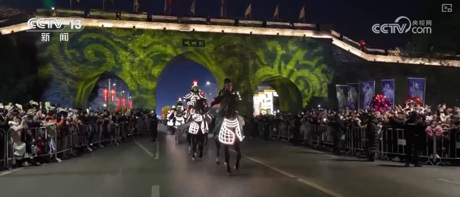 更有2026架無人機騰空而起,勾勒出“萬馬奔騰”“鳳凰展翅”光影長卷,讓游客驚嘆。還有為古城墻披上斑斕外衣的荊風楚韻燈光秀,讓大家賞心悅目。光影流轉(zhuǎn)間,放佛歷史與現(xiàn)代隔空對話。