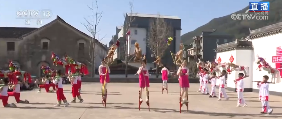 旁邊進(jìn)行的是踩高蹺表演,和北方高蹺相比,河上鎮(zhèn)高蹺的高度并不算高,但卻格外講究“鮮”跟“活”。小朋友們踩著高蹺,時(shí)而轉(zhuǎn)身,時(shí)而跳躍,動作靈動又驚險(xiǎn),這正是傳統(tǒng)文化傳承中最動人的模樣。