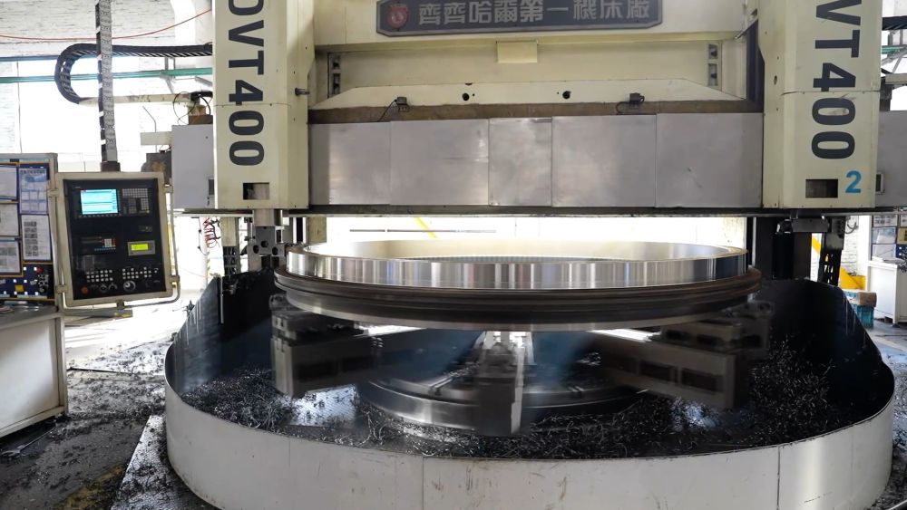 在洛軸集團(tuán)風(fēng)電軸承生產(chǎn)車間,一排排機床正井然有序地加工著一批風(fēng)電偏航軸承。