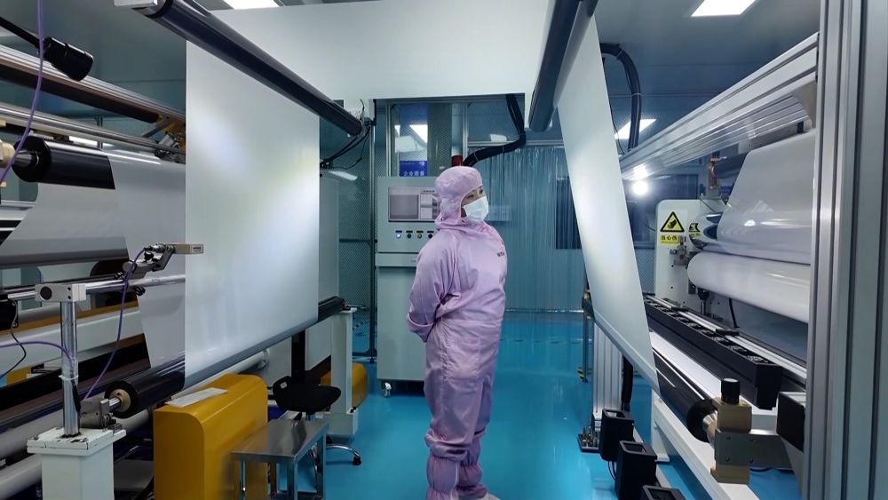 在園區(qū)內(nèi)的湖南壹鑫科技有限公司無塵生產(chǎn)車間,光學(xué)薄膜自動化生產(chǎn)線正滿負(fù)荷運轉(zhuǎn)。