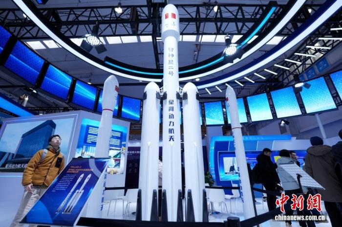 圖為觀眾在星河動力航天展館了解可重復使用液體運載火箭模型。 中新社記者 張祥毅 攝