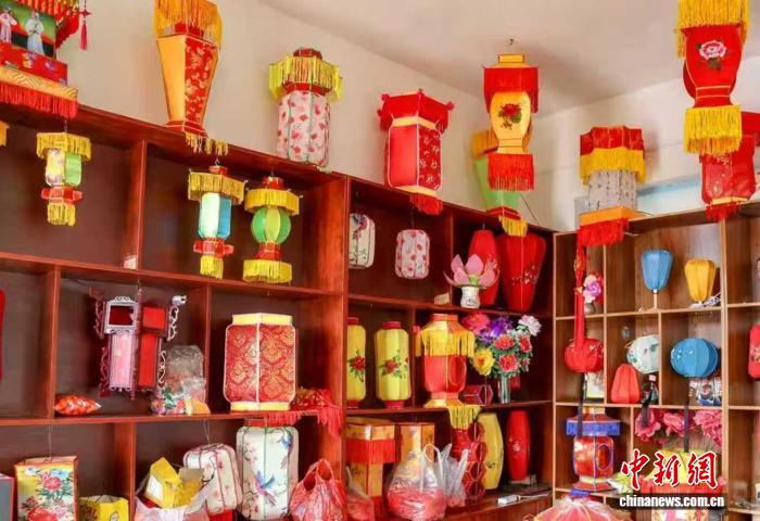 花燈制作車間里,村民正忙著制作一批喜文化宮燈。 郭少宇 攝