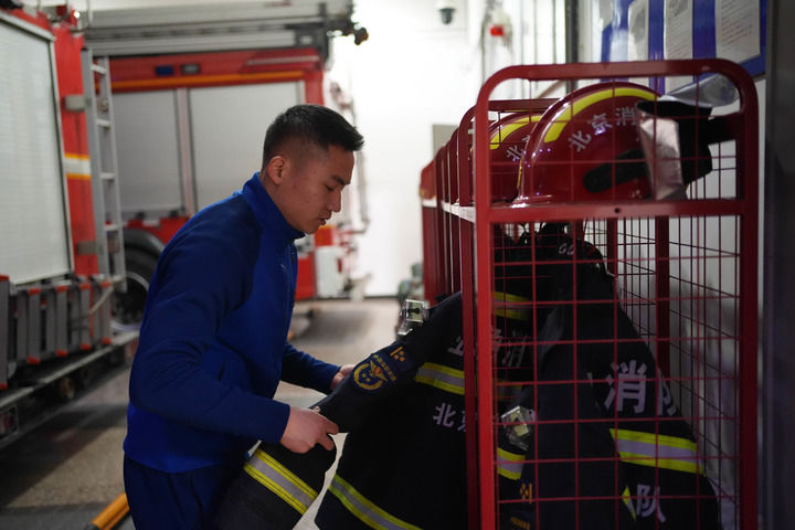 2月3日,一名消防員對(duì)消防防護(hù)裝備進(jìn)行檢查。新華每日電訊記者謝晗 攝