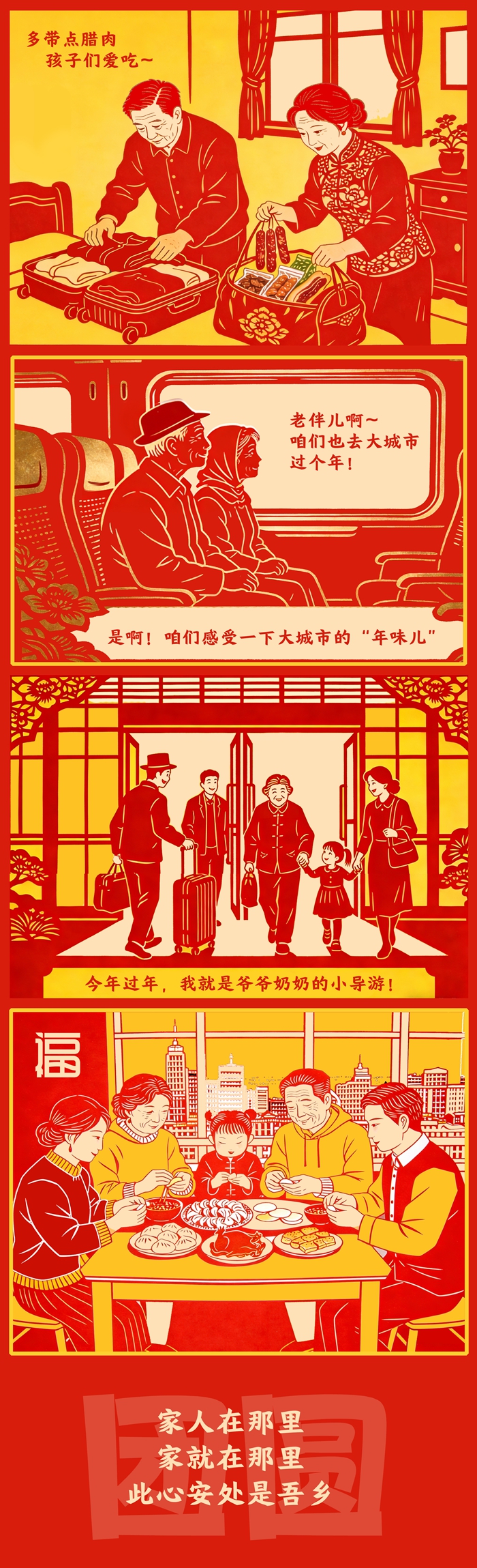 反向春運,遠不止出行方式之變,它見證著中國人對“家”的理解,從故土坐標(biāo)轉(zhuǎn)向親情紐帶。變的,是團圓路徑的智慧選擇;不變的,是對親情的永恒珍視。一個充滿活力的現(xiàn)代社會,正以其包容與溫度,為每一種真摯奔赴鋪就道路。流動中國的底色是團圓,動力是親情,終點永遠是家之所在。(文字/泰軒萍 漫畫/泰軒萍 編輯/喬佳新)